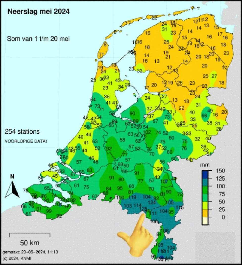 De afgelopen weken was het al vaker raak in het zuiden van het land. Vooral in Zuidoost-Brabant en Limburg werd veel regen gemeten.