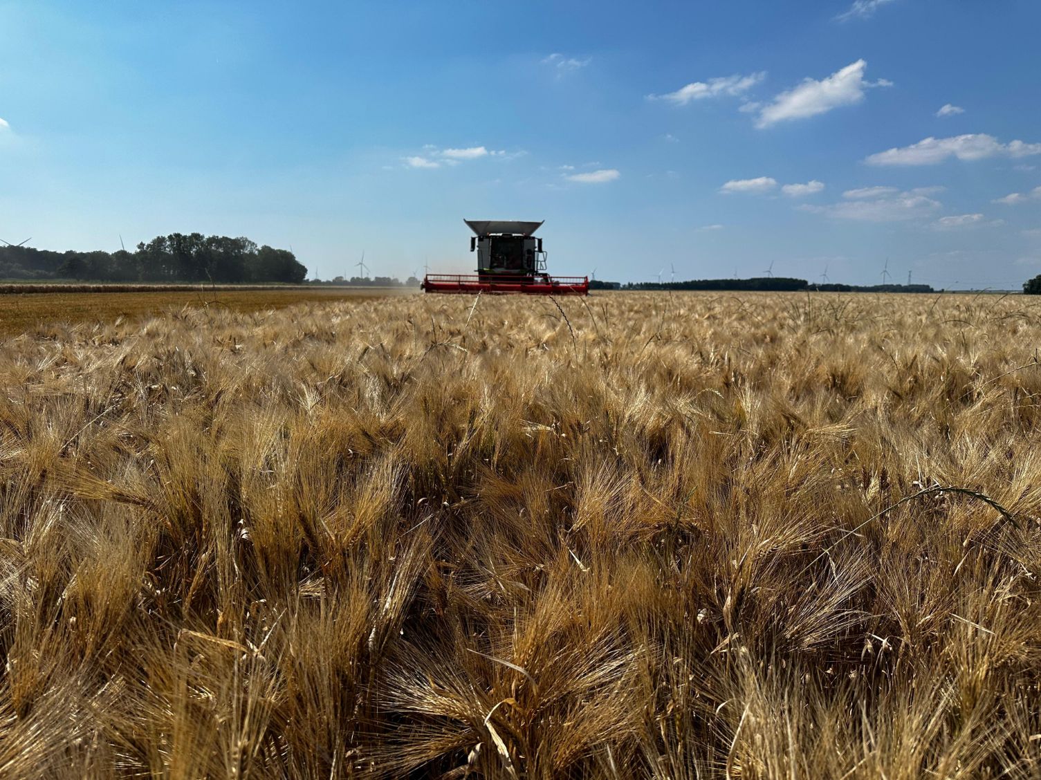 „En ineens is het zomer”, reageert Aart den Bakker, manager afzet graan bij Agrifirm. „Met het oog op de regen die voor het eind van de week wordt voorzien, worden de percelen die rijp zijn nu gepakt.”