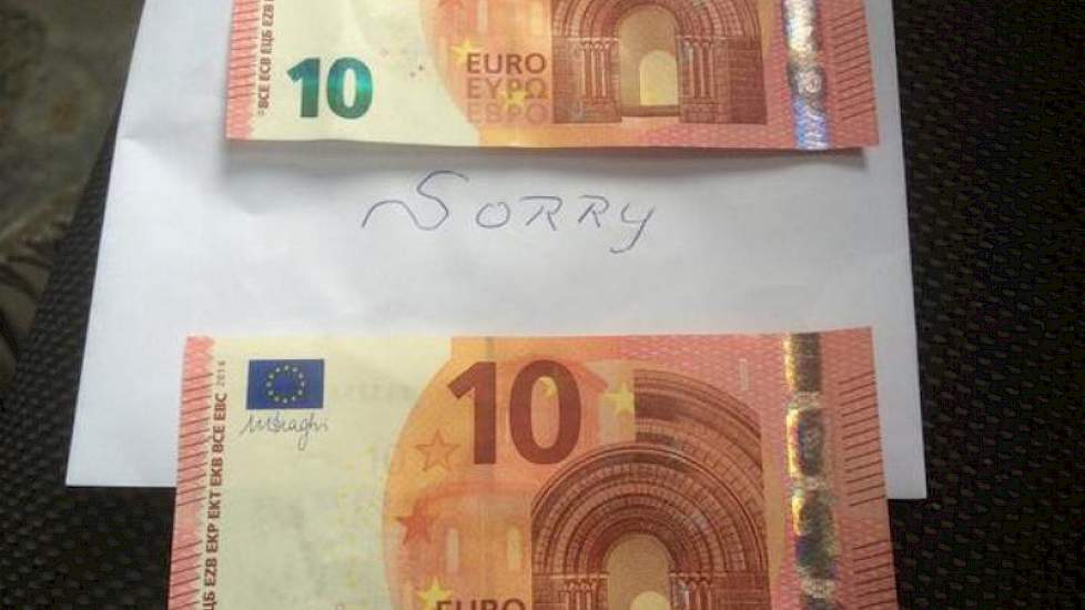 Dat resulteerde in de excuusenvelop met twintig euro. De Witte raadt iedereen aan aangifte te doen bij de politie, zodat dit een schrikeffect geeft. Voor de akkerbouwer is het nu klaar. ‘Het is goed zo. Deze dief heeft zijn lesje geleerd.’