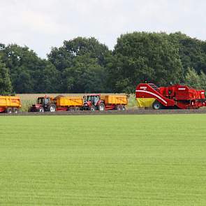 Akkerbouwers Jantinus en zijn vader Lensinus Beijering uit het Drentse Schoonloo rooiden deze week zetmeelpootgoed van het ras Festien. De familie teelt totaal 80 hectare zetmeelpootgoed van verschillende rassen naast de gewone fabriekers voor Avebe.