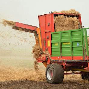 Loonbedrijf Haaijer dekt de zetmeelaardappelen van akkerbouwer Henk Hoekman uit Exloo (Dr.). Hij doet dit met een verspreider die hij zelf heeft ontworpen. De kracht van deze machine zit volgens Haaijer in het feit dat deze het stro niet snijdt, voor het door de ventilator over de hoop wordt geblazen. ‘Veel boeren willen zo lang mogelijke strohalmen over de hoop.’ De Avarna’s zijn in de eerste week van oktober gerooid, en ze worden pas na kerst afgeleverd, zegt Hoekman. De aardappelen zijn volgens hem van goede kwaliteit. ‘Ondanks de regen. Ik schat op een opbrengst van ruim 45 ton gemiddeld over mijn aardappelareaal.’Ook met jouw foto's op Akkerwijzer? App naar 06-23174211Mail naar akkerbouw@agrio.nl