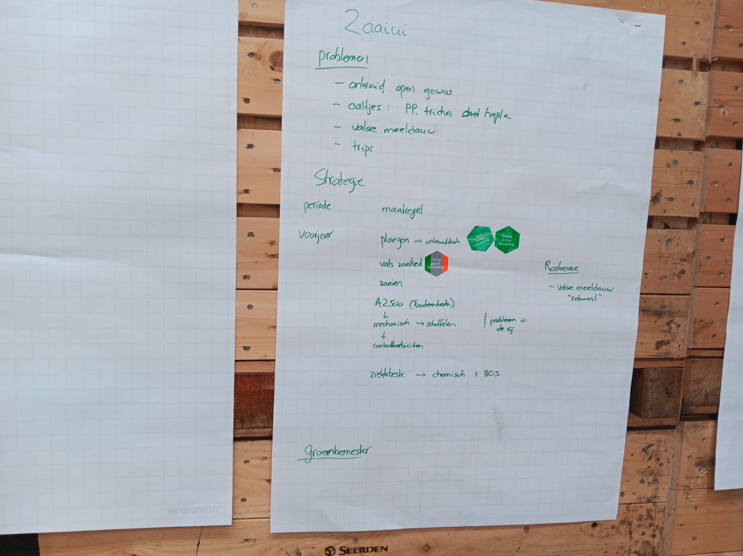 Met de boodschap van Huiting in het achterhoofd gingen de bezoekers van de velddag onder begeleiding van een team van experts van WUR aan de slag met de praktische invulling met hulp van het ICM-raamwerk. Daarbij was het doel om tot een integrale teeltstrategie te komen die past op de zuidoostelijke zandgronden. Dit werd gedaan aan de hand van verschillende casussen. Bij een van de casussen was de vraag of en hoe lelieteelt in een akkerbouwrotatie met de volgende gewassen zou kunnen passen: consumptieaardappelen (2x), wintergerst, suikerbiet (2x), peen, snijmais en zaaiuien. Deze gewassen zijn kenmerkend voor de teeltregio. De groep werd opgesplitst in subgroepen, waarbij elke groep aan de slag ging met het maken van een bouwplan en elk een focuspunt toebedeeld kreeg: onkruiden, ziekten, plagen of nematoden. De onderstaande fotoserie geeft een inkijkje in de bevindingen die zijn gedaan.