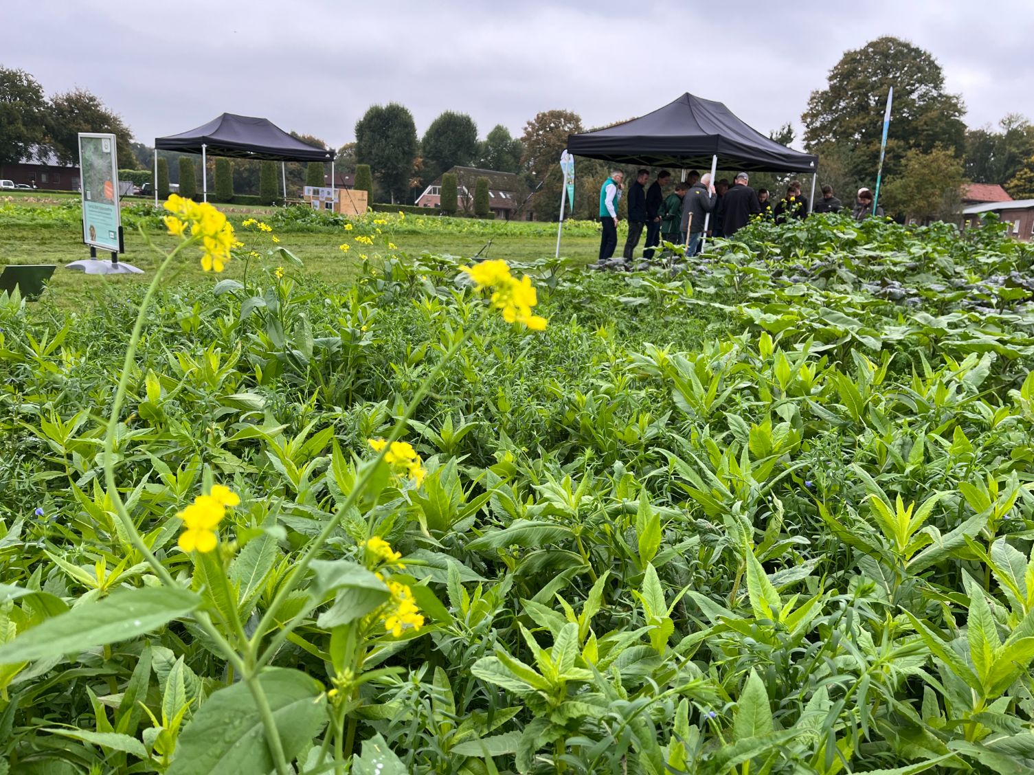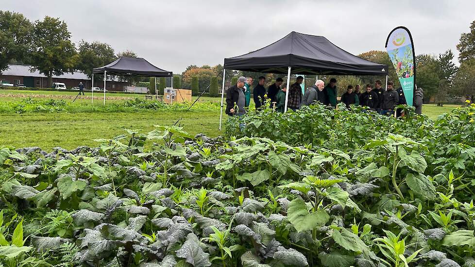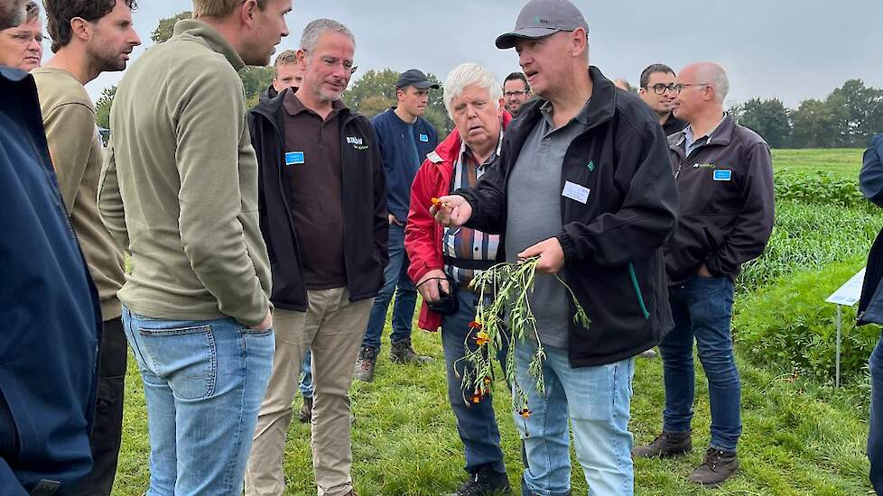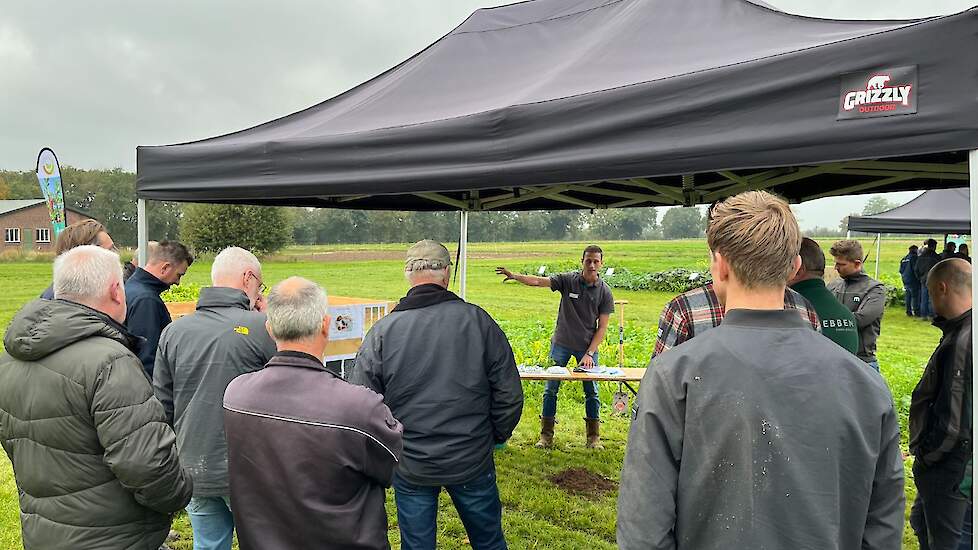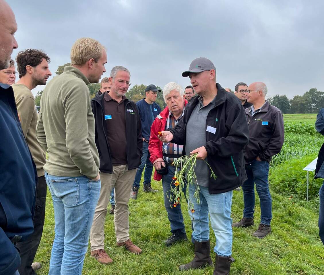 Tako van den Hul en Rowan Timmer bespraken de nieuwste ontwikkelingen in TerraLife groenbemesters bij DSV zaden. De allernieuwste mengsels waren ingezaaid op het innovatieveld waarbij de componenten, toepassing en teelt werden toegelicht. Ook het actuele onderwerp companion cropping, het gelijktijdig telen van twee gewassen, kwam aan bod. DSV veredelt nieuwe gewassen voor in de TerraLife mengsels zoals de Melenka veldboon, welke eveneens ingezaaid was. Ook de monocomponenten van DSV zoals Trident bladrammenas, Proud Mary tagetes en Japanse haver kregen aandacht en de vorig jaar geïntroduceerde winterharde TerraLife CoolSeason.