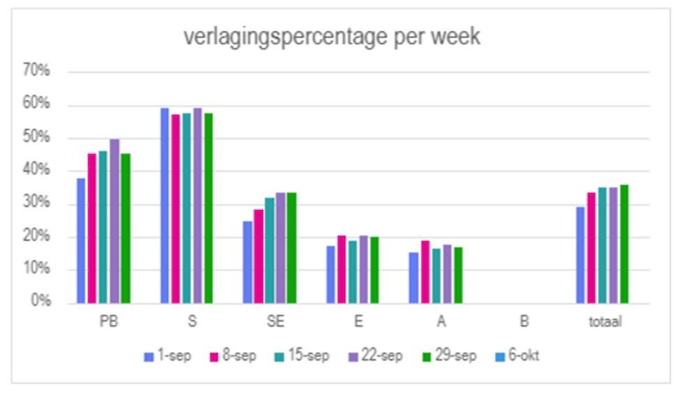 Voornamelijk verlagingen in klasse PB en klasse S