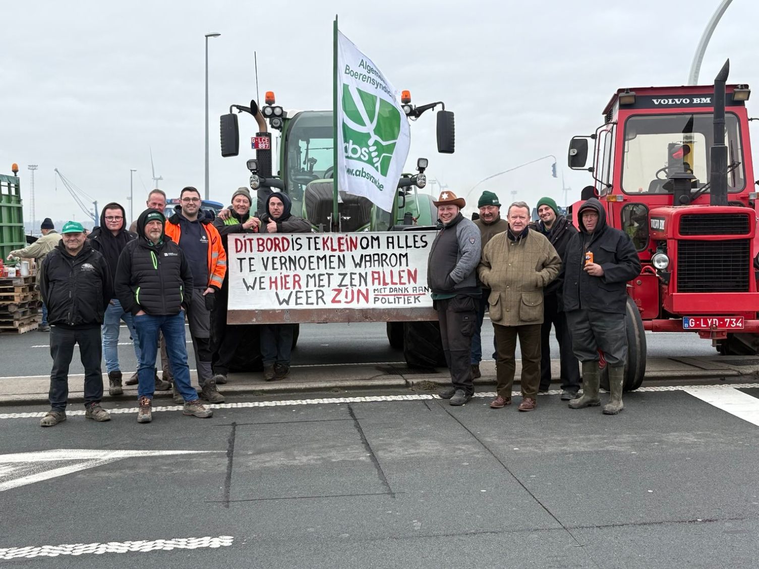 De Belgische acties werden georganiseerd door het Algemeen Boerensyndicaat (ABS) en de Waalse Federatie van Jonge Landbouwers (FJA). Op drukke verkeersknooppunten in België zorgden de aangekondigde acties voor hinder. Aan de Turborotonde in de haven van Gent stonden zo’n honderd tractoren. Het verkeer werd er gefilterd doorgelaten via één rijstrook. In de haven van Zeebrugge blokkeerden meer dan honderdvijftig tractoren de A11, waarbij vrachtwagens slechts beperkt konden passeren. In Wommelgem stonden een veertigtal tractoren die de binnenste rijstrook van de rotonde bezethielden. Ook in Wallonië kondigde de FJA blokkades aan op strategische verkeerspunten. Die acties zouden donderdagavond en vrijdag plaatsvinden.