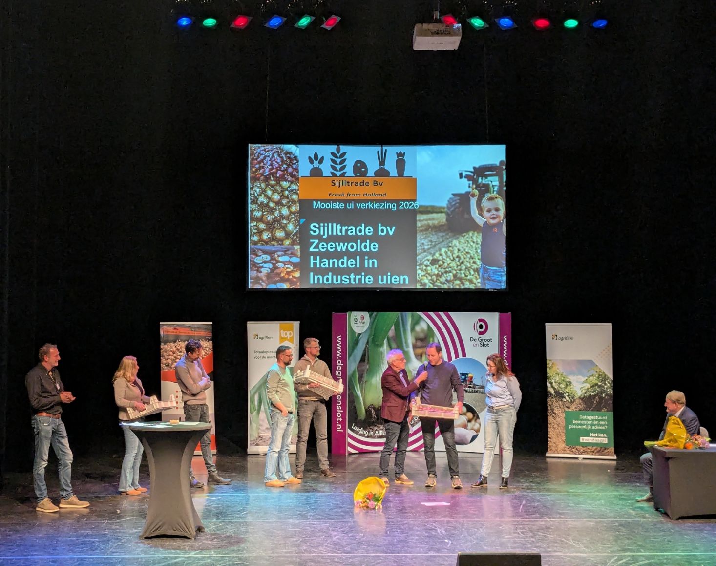 De top drie werd geveild voor het goede doel. Het kistje met zo’n vijftien kilo uien van de nummer drie Joeri Koeman uit Bant (FL) werd voor een bedrag van 1500 euro verkocht aan HLB uit Wijster (DR). Het kistje van de familie Habets uit Nagele (FL) ging voor een bedrag van 7000 euro onder de hamer.