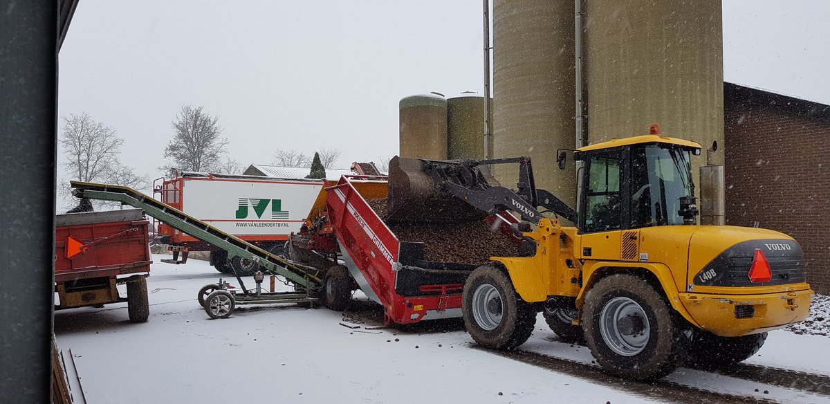 Fotoserie: Foto’s: Aardappelen afleveren in de sneeuw