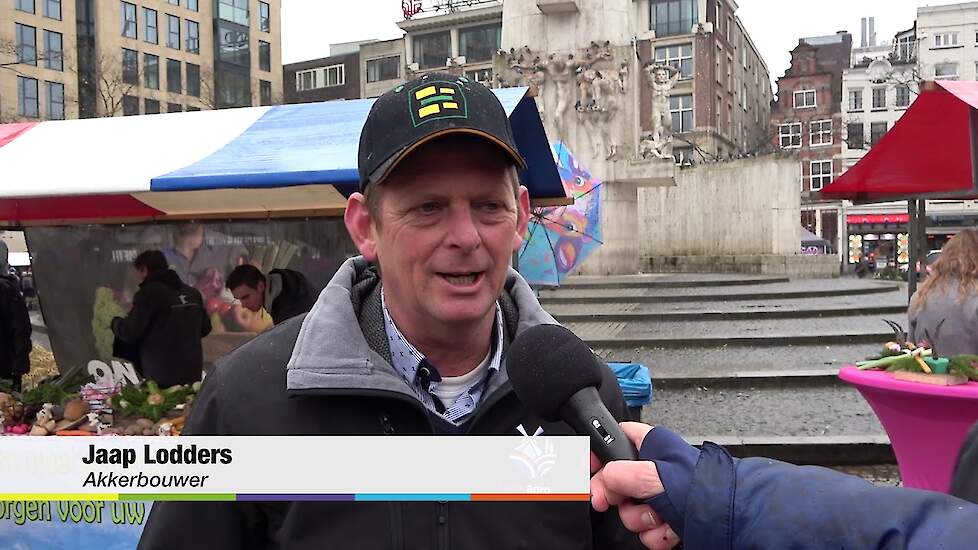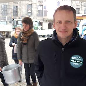 In alle vroegte arriveerden de eerste boeren en boerinnen al op het Amsterdamse plein. En met hun eten en drinken voor circa 20.000 mensen. Denk aan 150 oliebollen, 1.500 liter zuivel, 15.000 broodjes, 100 worsten en bakken vol patat, zegt Agractie-bestuurslid Matthijs Lubbertsen. Ook voorzitter Bart Kemp ziet tevreden toe hoe de bakken voedsel worden uitgestald. „Het is een mooie ludieke manier om een aanzet te geven tot de dialoog tusssen voedselproducent en voedselconsument hier in de randstad. Voor 15.000 man is er zeker weten genoeg te eten en te drinken vandaag.”