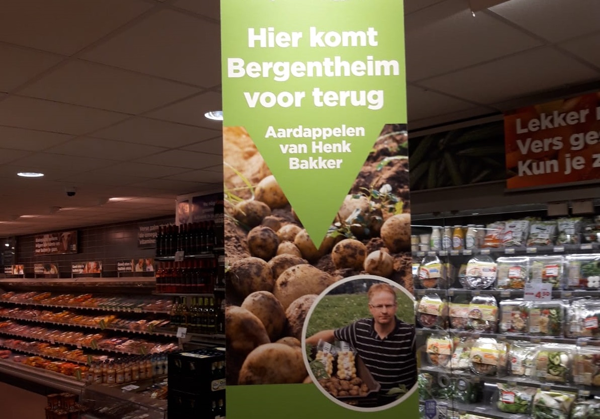Zo’n vijftien jaar geleden heeft hij zelf de stap gezet om zijn aardappelen bij de lokale supermarkten in het schap te krijgen. De akkerbouwer was naast zijn huisverkoop op zoek naar een nog beter bereik van de consument. „Consumenten kiezen steeds meer voor gemak. Niet iedereen wil naar een boer fietsen voor zijn aardappelen, in plaats daarvan willen ze meer en meer een kleine zak meenemen uit de supermarkt”, is zijn ervaring. Bovendien merkte hij dat de supermarkten op zoek zijn naar lokaal geteelde producten. „In mijn supermarkt worden bijvoorbeeld eieren, vlees, brood, kaas en ook mijn aardappelen verkocht.”