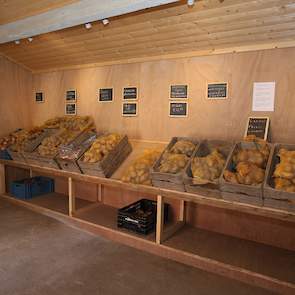 Akkerbouwers Johan en Elise Kruijthoff in Mijnsheerenland (ZH) hebben hun huisverkoop uitgebreid met een fritessnijder. Zo hopen ze een klein deel van hun voorraad fritesaardappelen weg te werken.