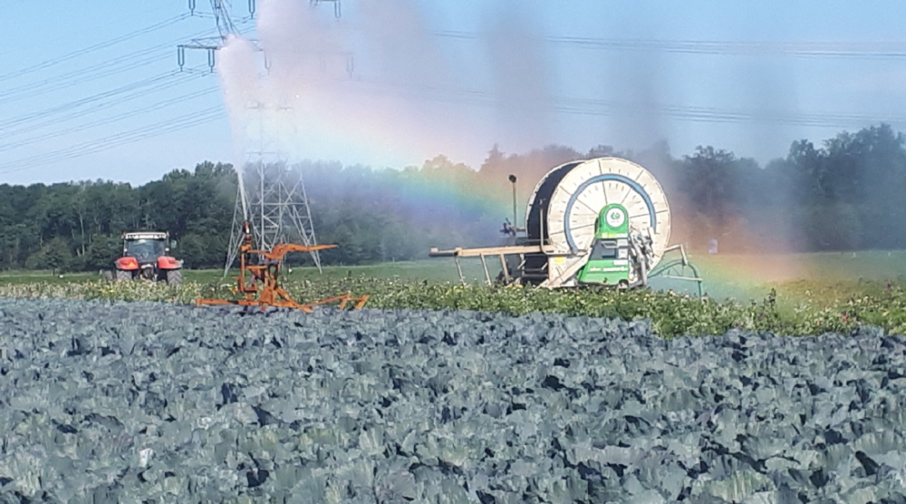 Akkerbouwer Jaap Lodders plaatste mooie foto's van het beregenen van zijn rode kool.