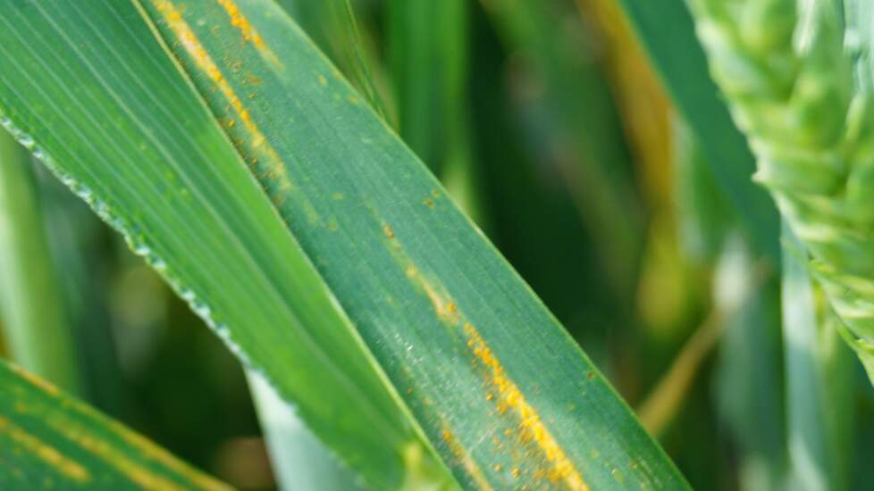 In de wintertarwe bij de noordelijke proefboerderijen Ebelsheerd en Kollumerwaard is naast septoria nu ook gele roest aangetroffen. Dat blijkt uit de graanziektebarometer.
