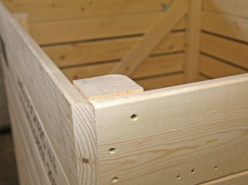 7. De kisten kunnen nu worden gemonteerd. De pallet heeft een kleine of een grotere insteekopening voor de heftrucklepels. Dit heeft alles te maken met de wijze van ventilatie en bewaring van het product. Aardappelkisten hebben een opening van 10 centimeter, uien moeten daarentegen intensiever worden geventileerd. Daarvoor is een grotere opening aan de onderzijde nodig. De ene akkerbouwer geeft de voorkeur aan een droogwand, de andere aan een zuigwand of een combinatie van beide.