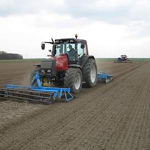 Collega-akkerbouwer Randolf Scholte legt ondertussen het land voor hem klaar. Voor op de trekker hangt een Steketee-zaaibedbereider, met onder de hefarmen een bandendrukrol. Deze leggen de grond mooi vlak. Hierdoor is de kopeg, achter op de trekker, nauwkeurig af te stellen. De kopeg heeft een open rol met daarachter een rijtje veertanden die de laatste oneffenheden vlakstrijken.