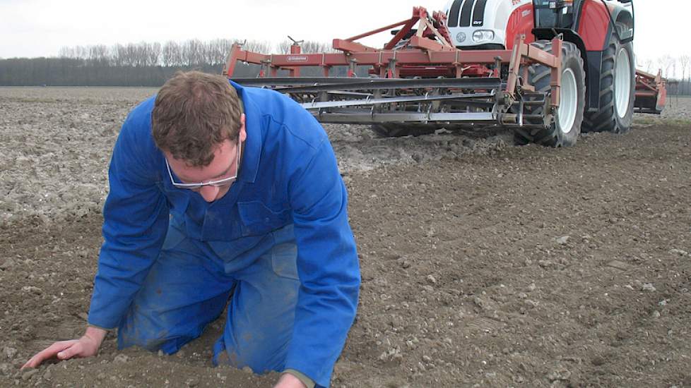 Voor Rienks is de belangrijkste eis dat de grond niet te fijn komt te liggen. De 25 procent afslibbare grond is gevoelig voor slemp. Om die reden ploegt hij doorgaans laat. Afgelopen winter was hij wat vroeger dan anders en lag het perceel begin december al om. Rienks: 'Achteraf heeft dat goed uitgepakt. Vanwege de lange vorstperiode zou het anders wel erg laat zijn geworden.'