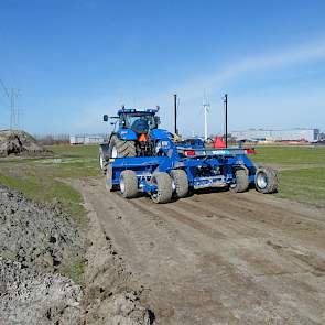 De zware egalisatie op het perceel van Bouwma heeft een week in beslag genomen. Voorafgaand aan de werkzaamheden is het land gecultiveerd. Op een aantal plaatsen is gediepploegd. Hierna is de grond versleept en is de goede teeltlaag weer naar boven geploegd.