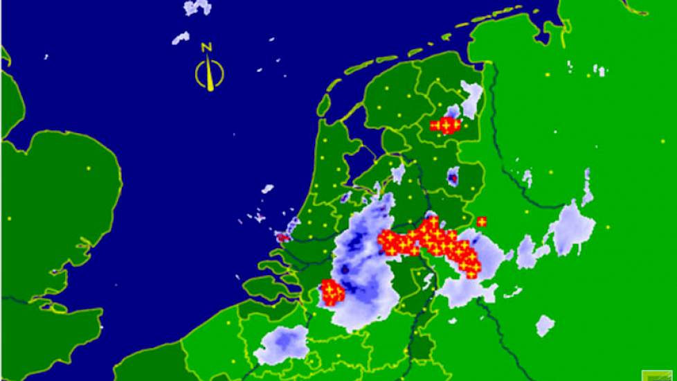 Zware onweersbuien trokken zondagavond over delen van het land. Vooral Noord-Brabant, de Veluwe en delen van Noord-Holland hadden veel last van de regen.