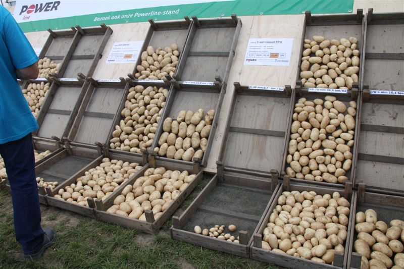 Van Iperen deelde een perceel op om bemestingsproeven te doen. De volledig vloeibare kunstmestgift in de rij van Van Iperen leverde grotere aardappelen op voor de friet, dan bij de andere drie mestgiften. De praktijk van PPO (rechts in beeld) naast het grote aantal aardappelen van formaat van Van Iperen. Ook het mineralenconcentraat, de dunne fractie van varkensdrijfmest met spuiloog en fosfaat met stikstof in de rij, en het TTW-systeem, leverden minder Innovators op.
