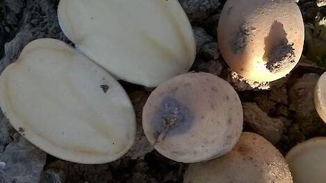 Zwermen roeken pikken Friese aardappelen uit de ruggen